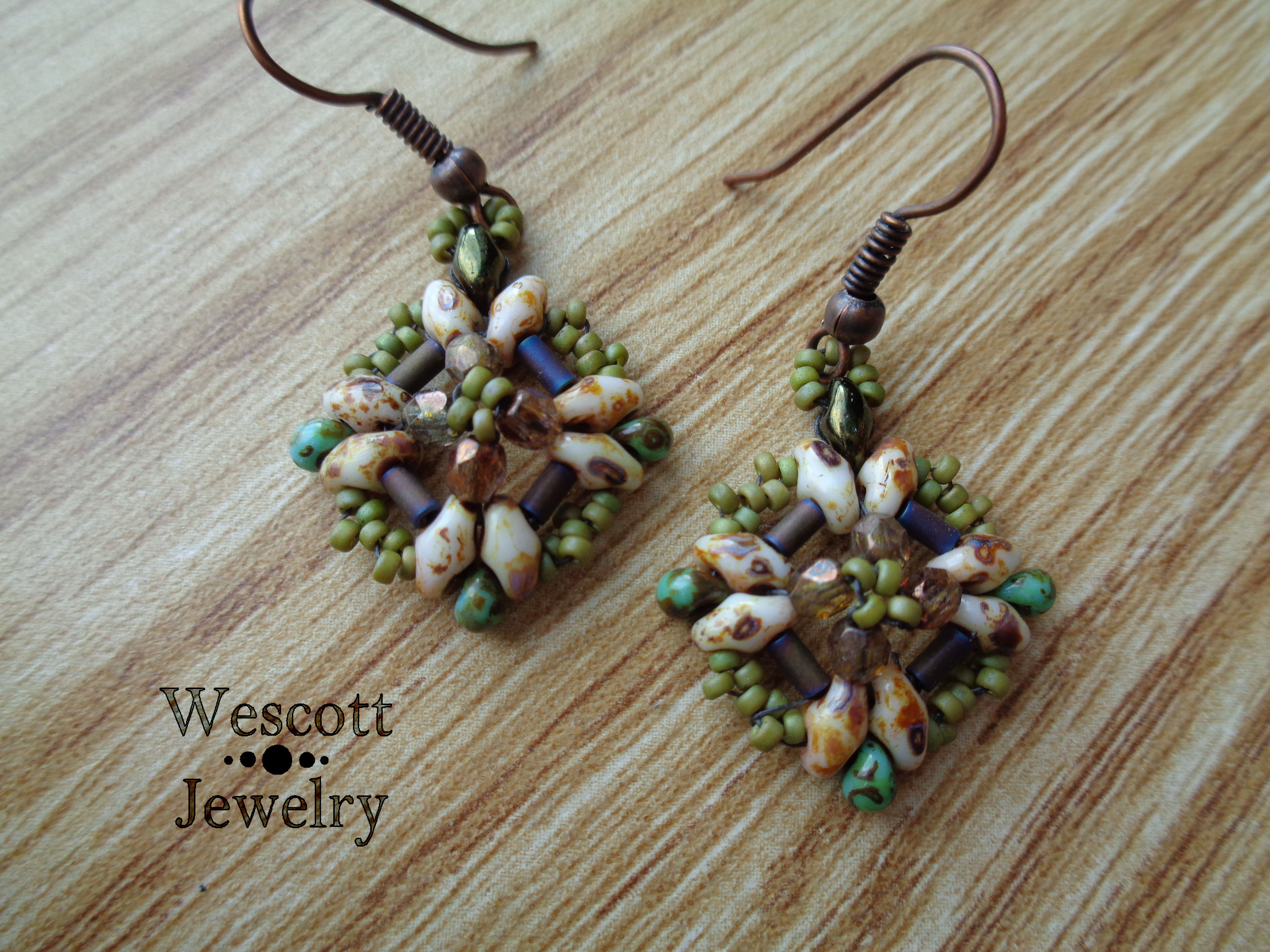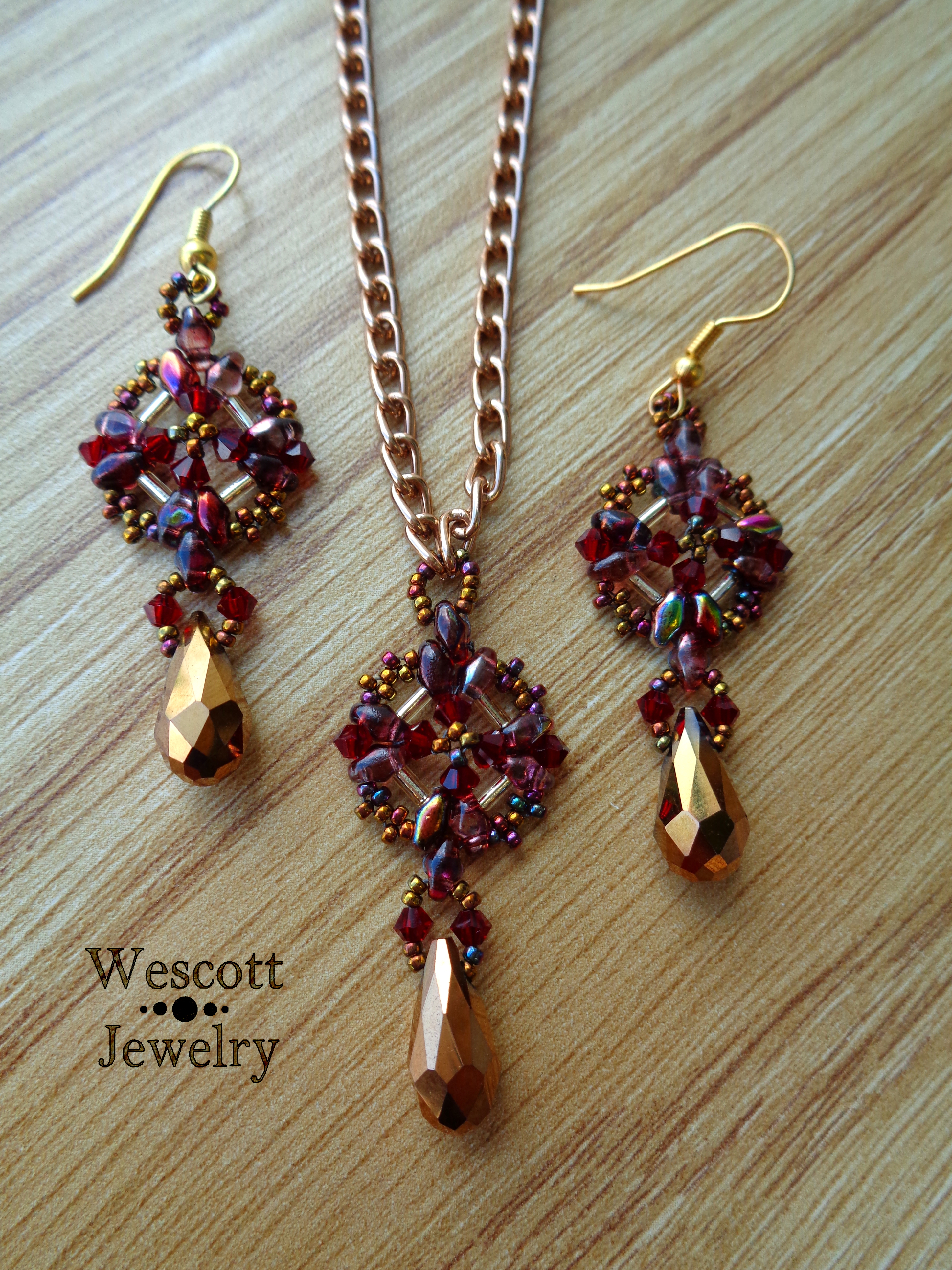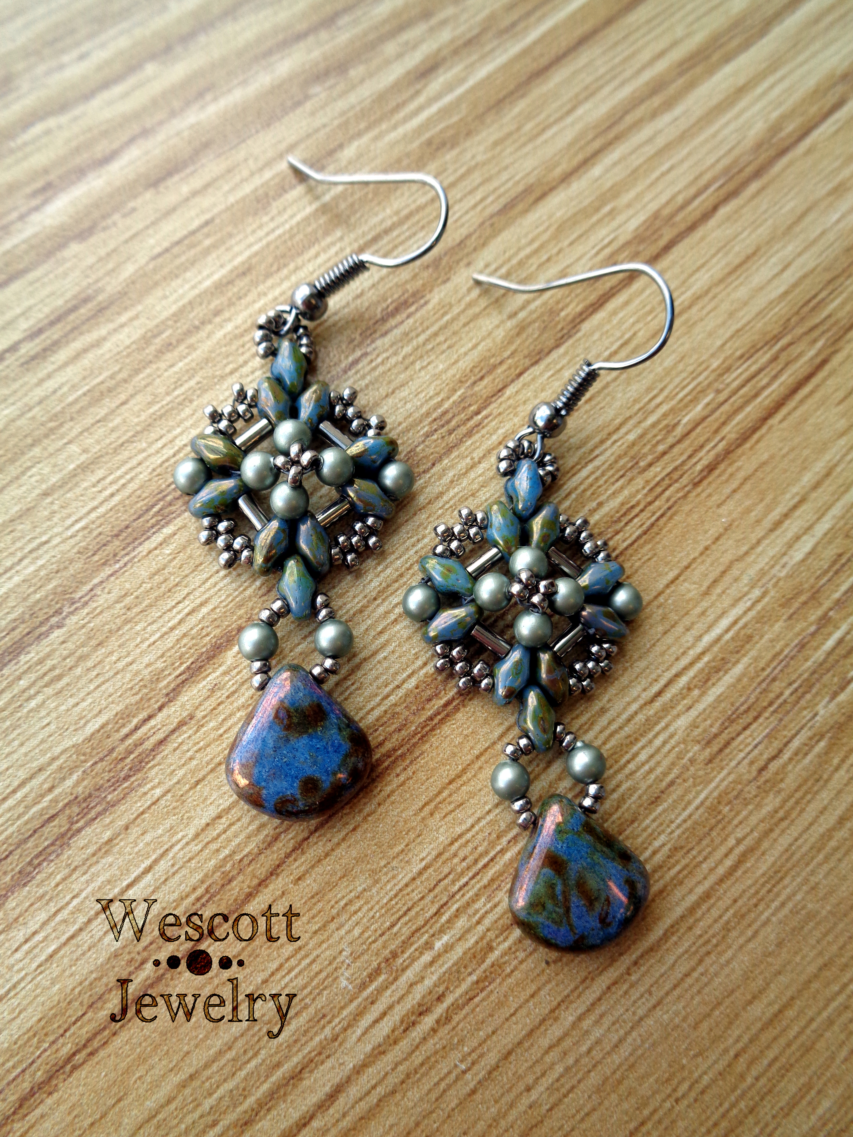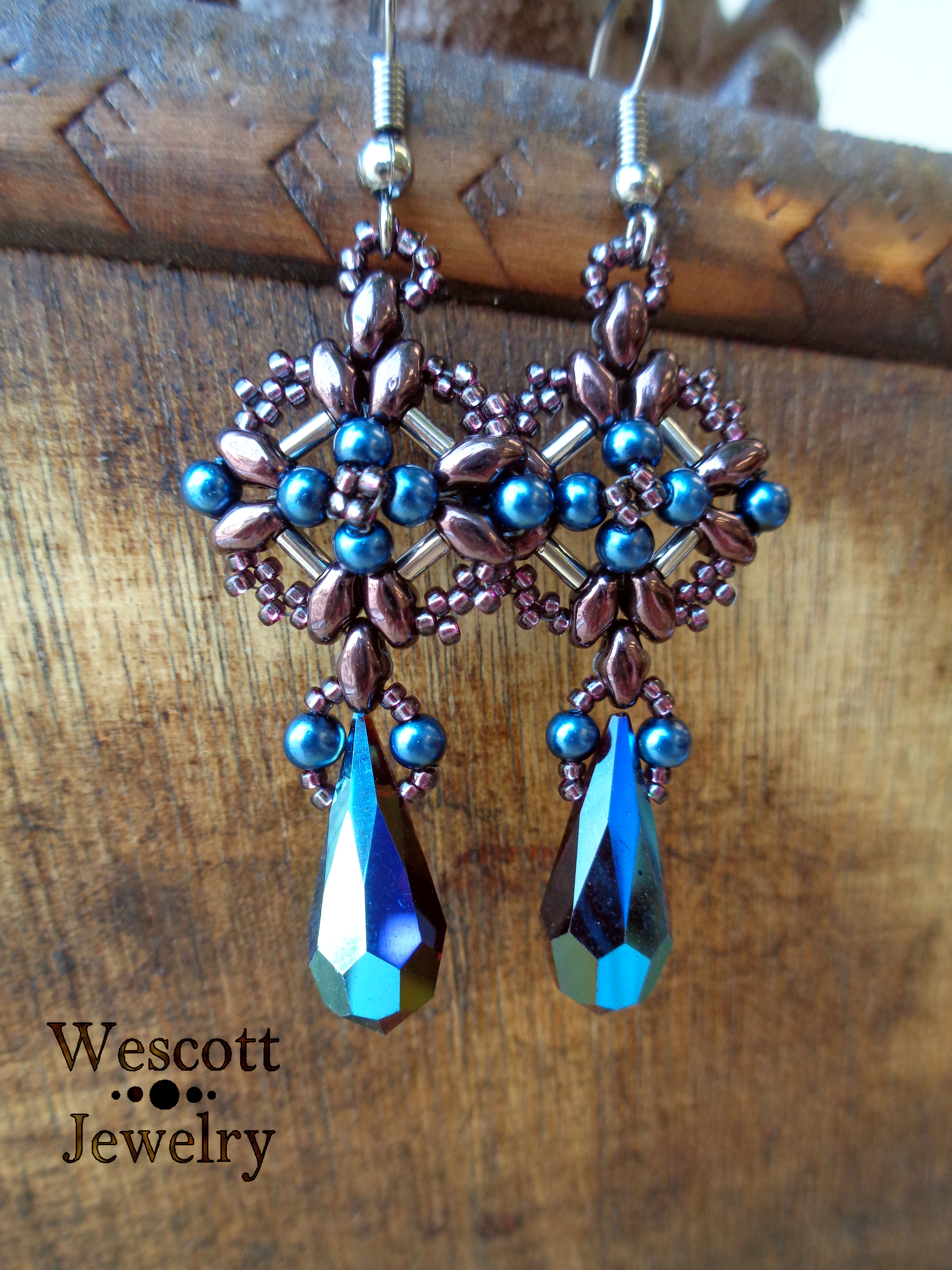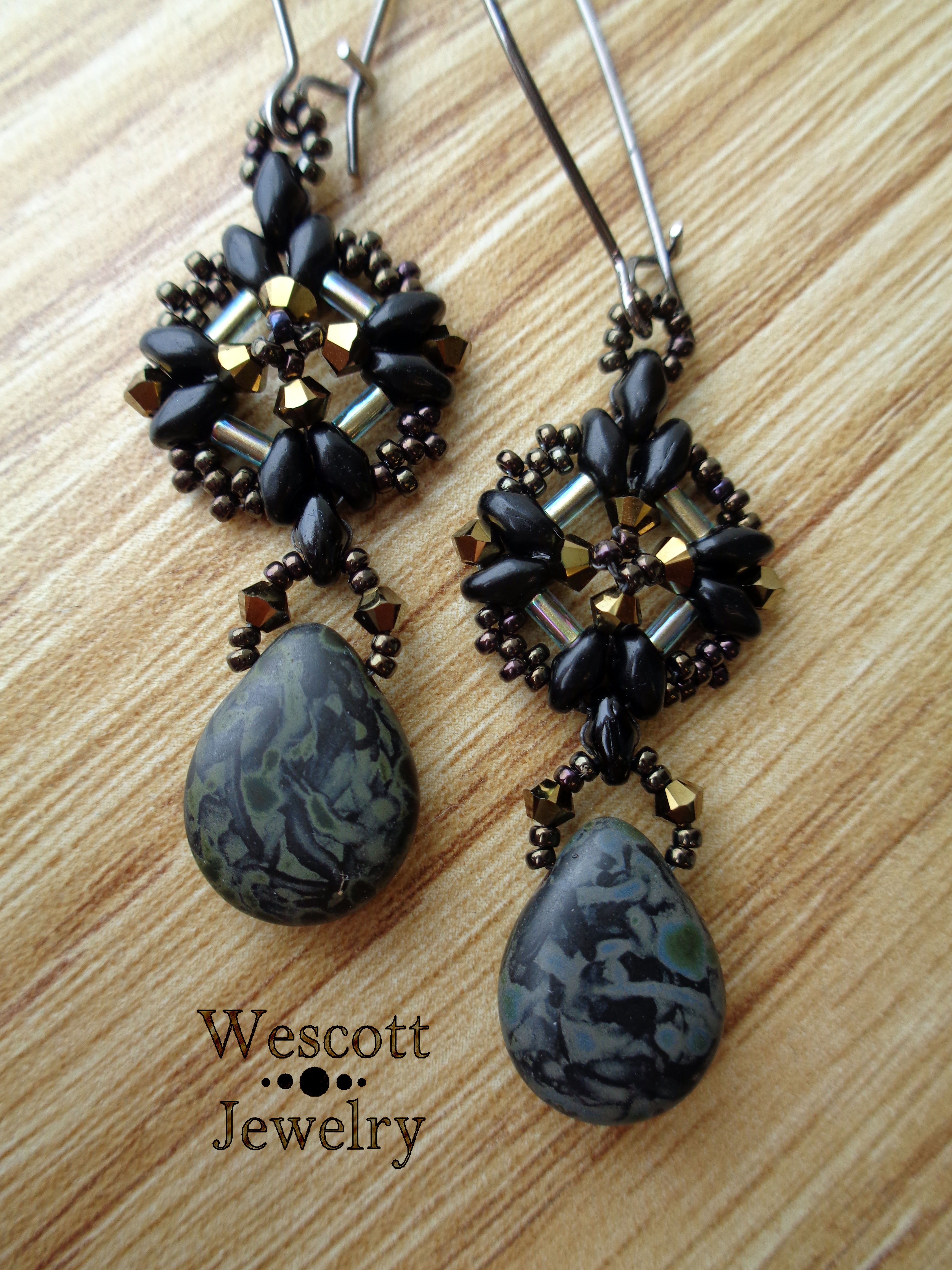 Here, I’ve got two fairly wide earrings that both used Czech pear-shaped drops.