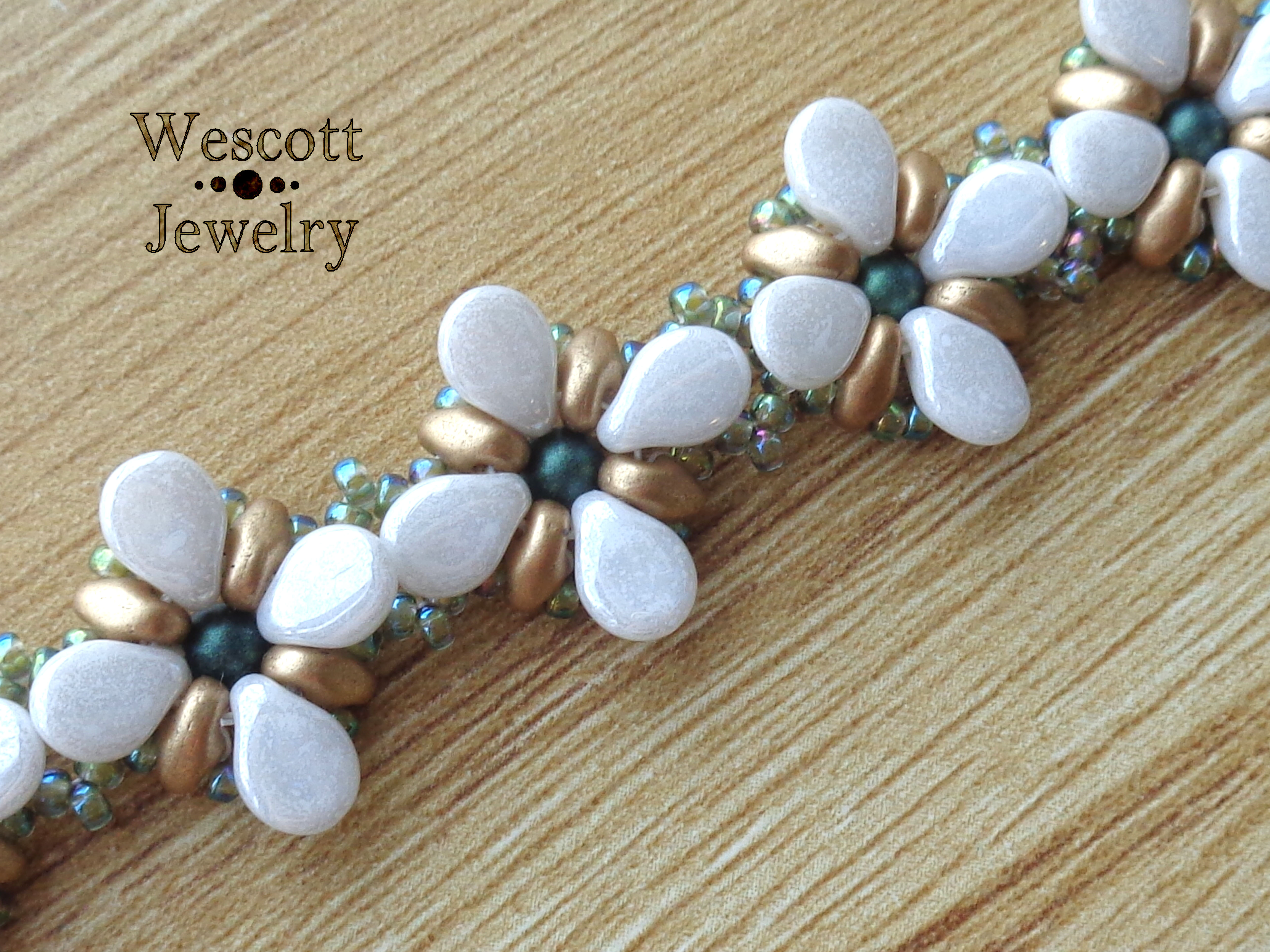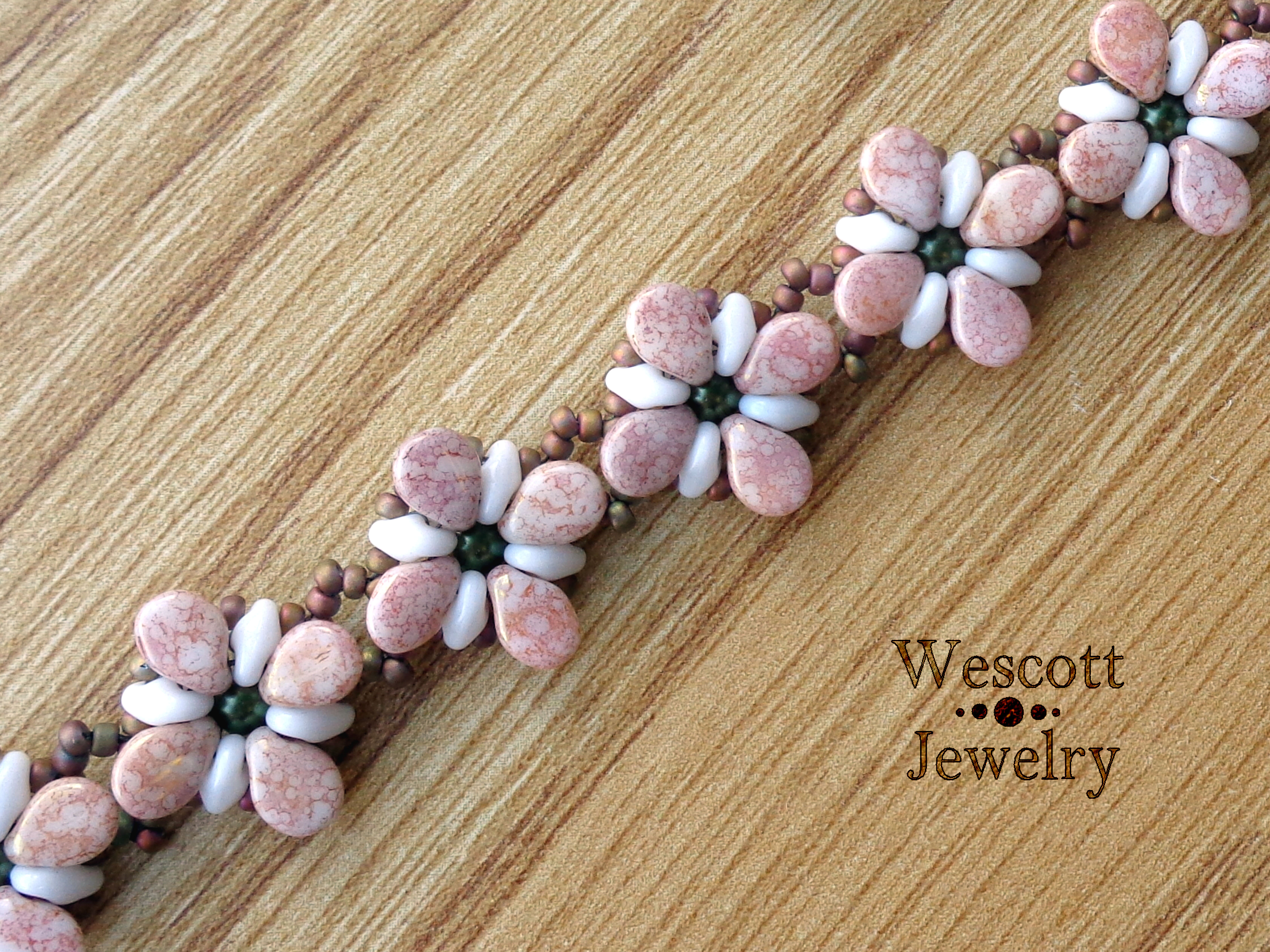 Hello, everyone! Remember that Pips design that I teased in my last post? Well, it is finally ready! I present to you – my Perky Pips Bracelet and Earring design!