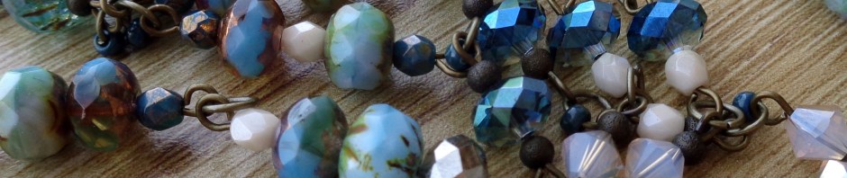 After that, I went crazy with as many coordinating crystals, glass beads, and metal bits that I could find in my stash. The result is a super long, reversible necklace that is a tidal wave of sparkly ocean treasure!