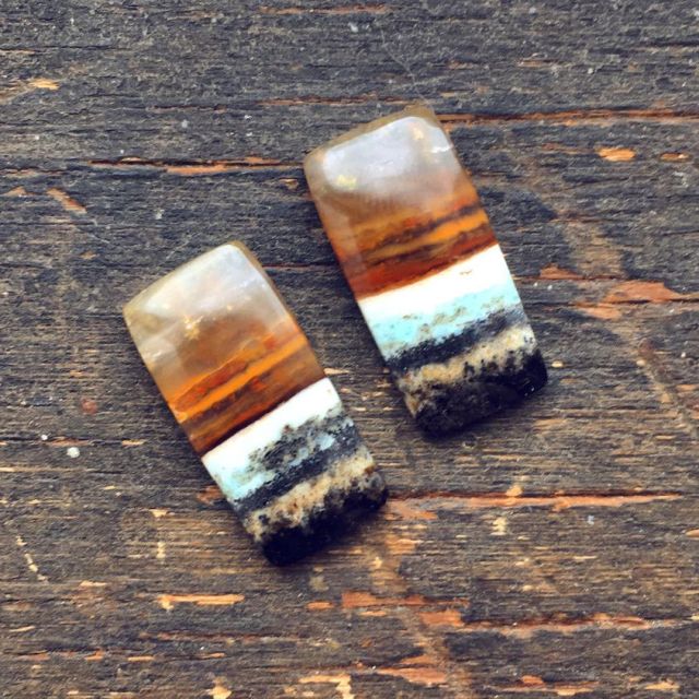 I did finally get to go to my first bead show since before the pandemic! It was actually a Gem & Mineral Show, so I mostly bought finished jewelry. I got an amber ring and earrings for myself, plus some black onyx earrings for my mom and a unakite “jade” roller, just for fun. But I did get these gorgeous matched cabochons. They’re Petrified Wood Opalite and I am absolutely in love with them and so intimidated by the idea of actually doing anything with them.